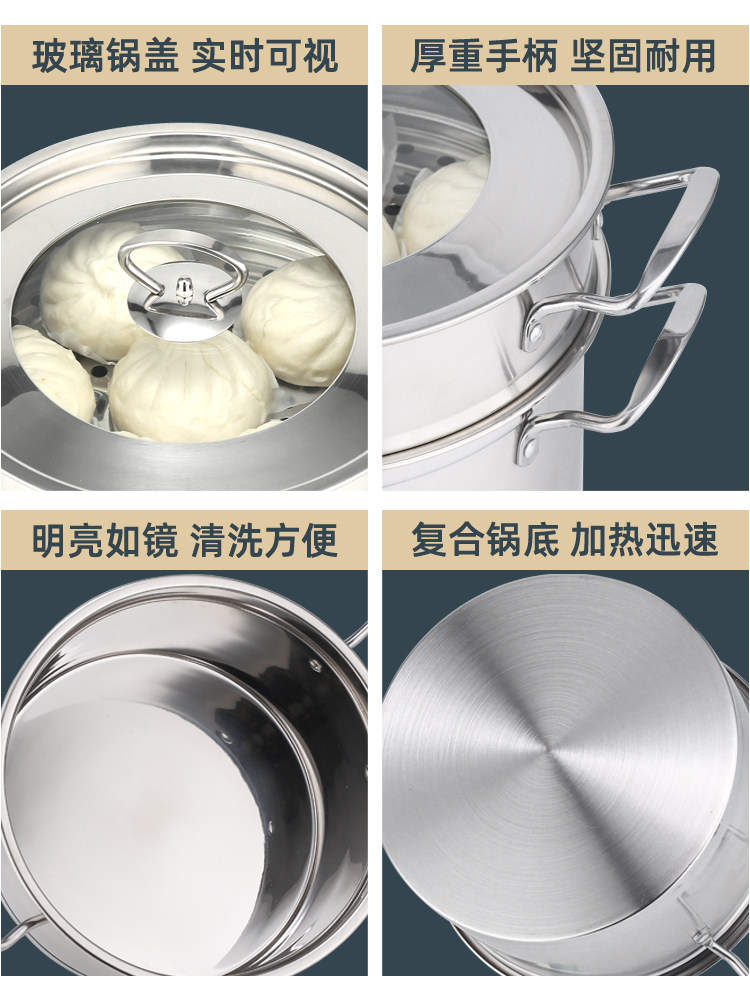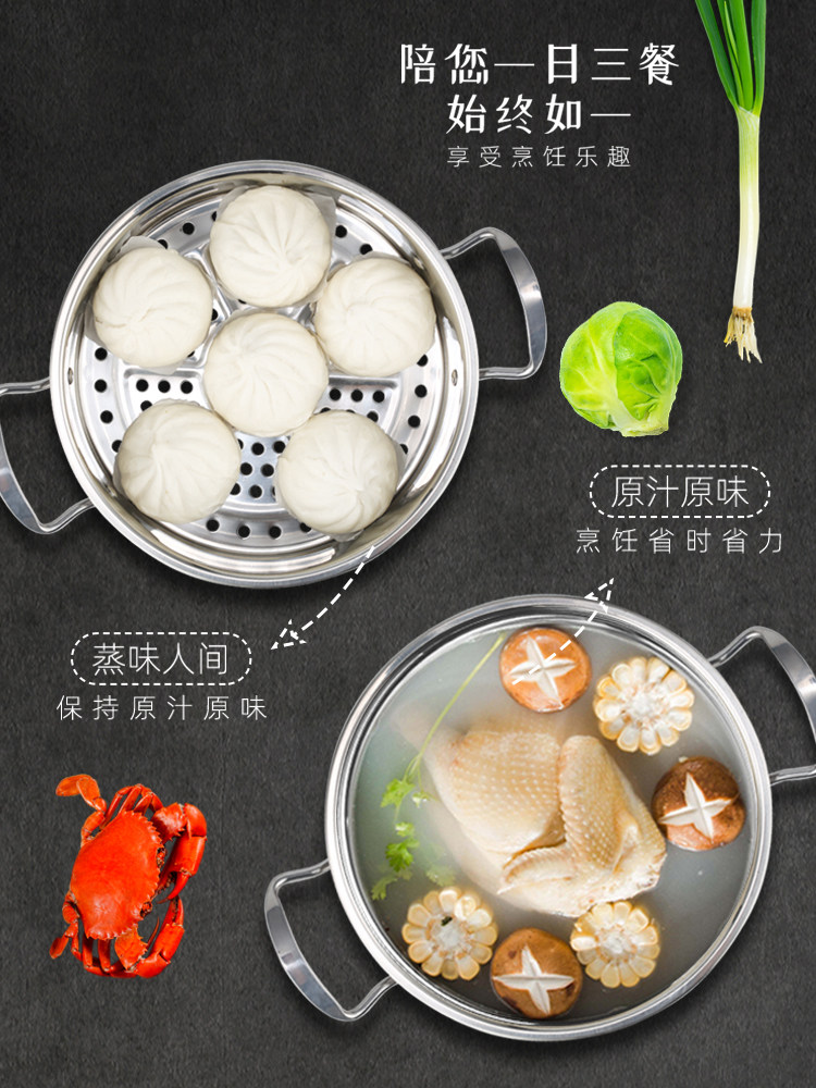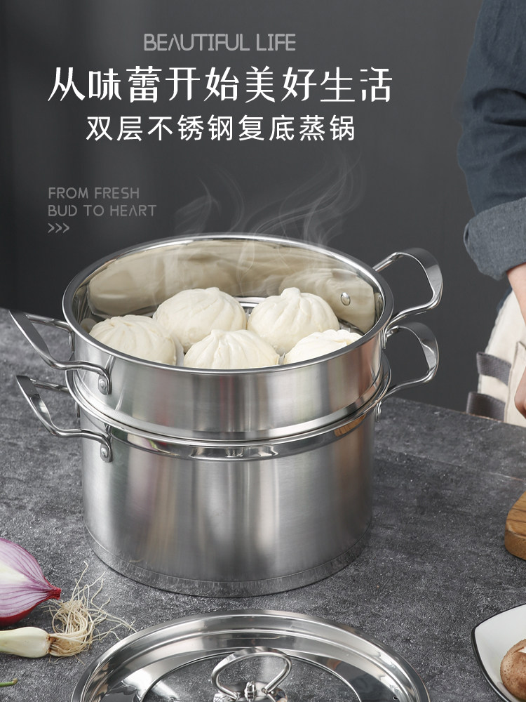 Steamer household stainless steel cage drawer non-stick steamed steamed bun small gas stove dedicated to making cold skin grate 2-layer steamer