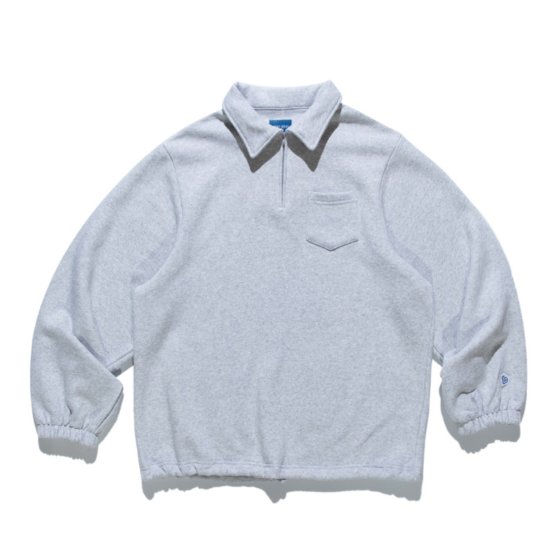 BENT IDEA solid color lapel half zipper thick cotton T male couple loose retro polo collar long sleeve top