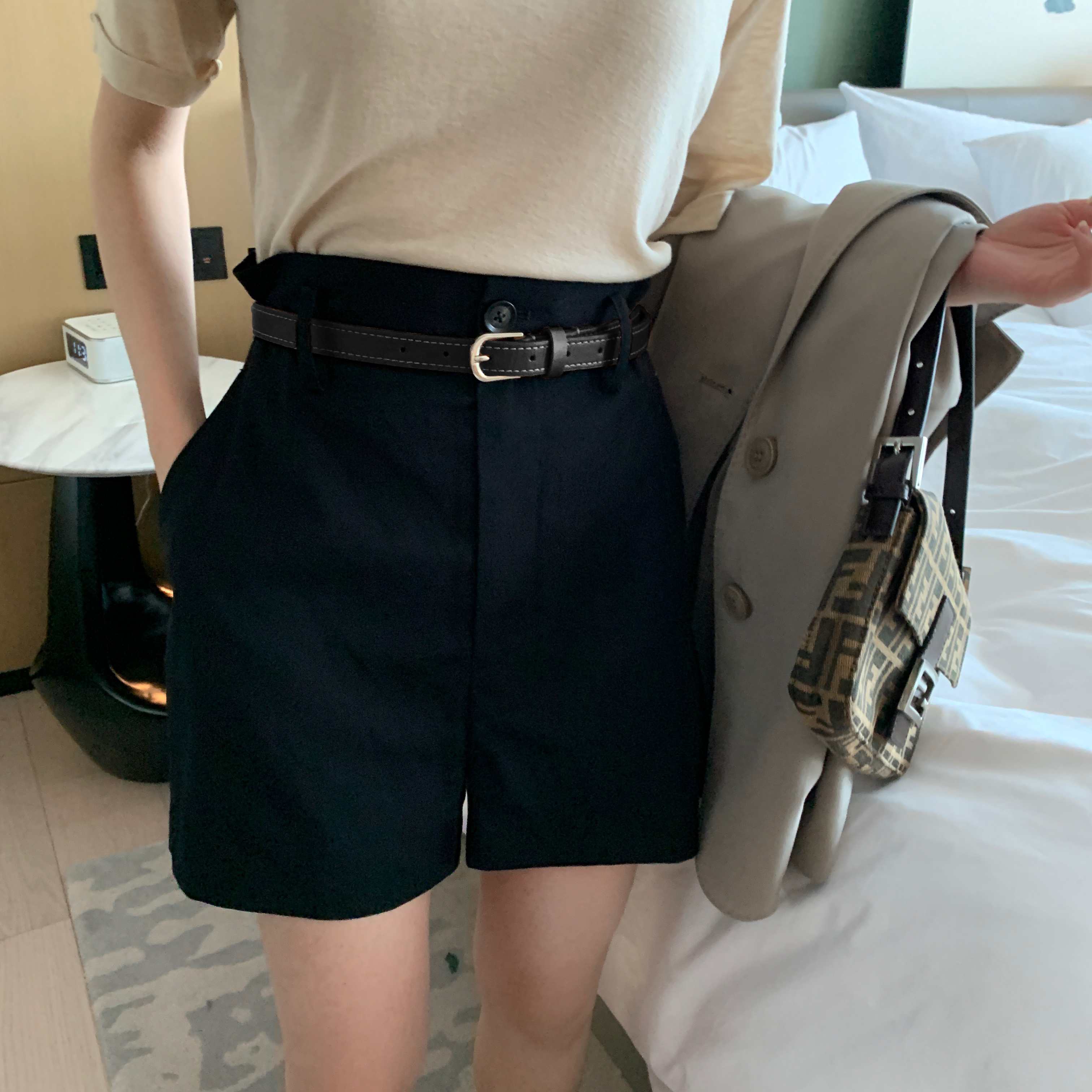 Pumpkin valley casual pants women's thin wild straight loose a word high waist retro five-point shorts summer K448