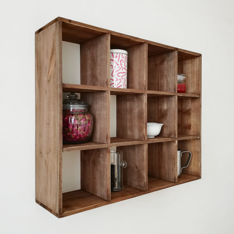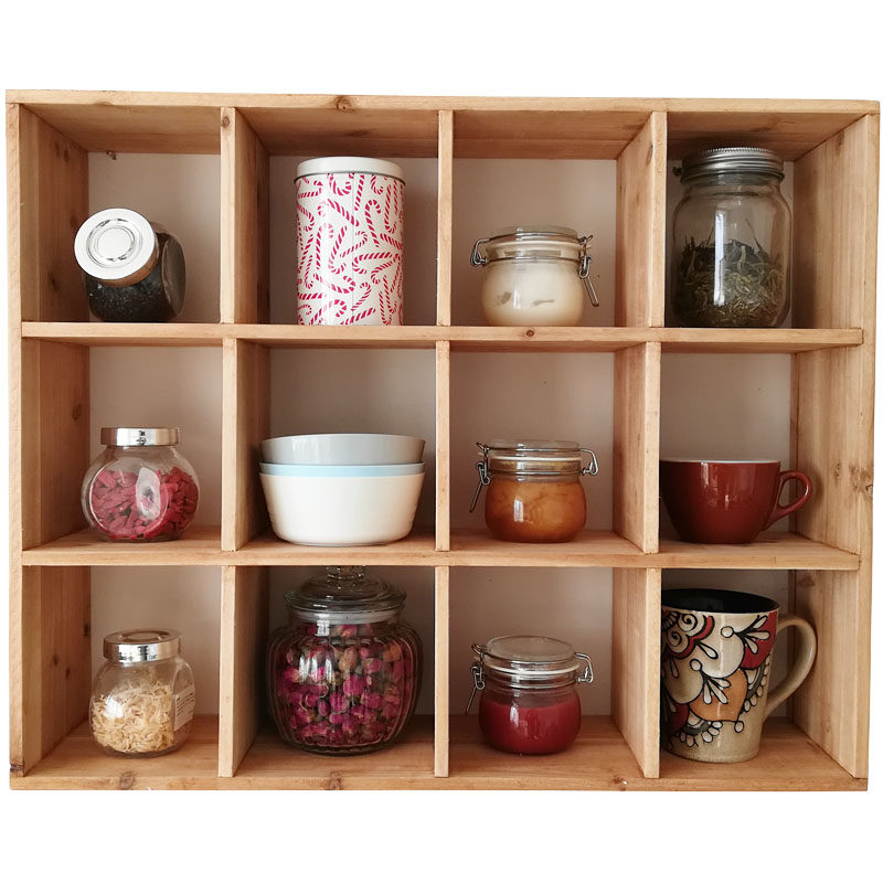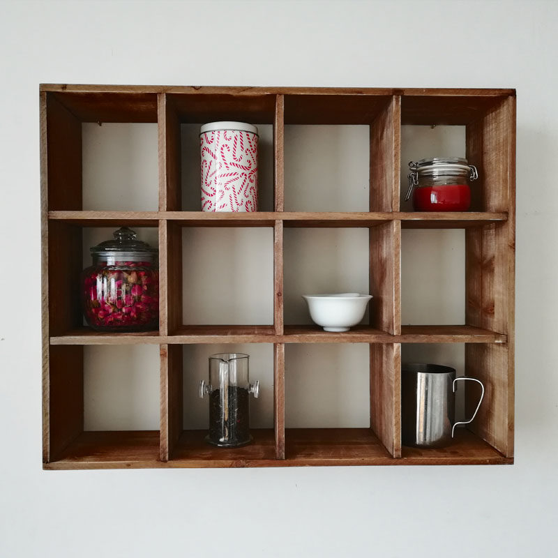 Pastoral room decorations put things in the tea set coffee cup storage shelf shelf hanging solid wooden grid on the wall
