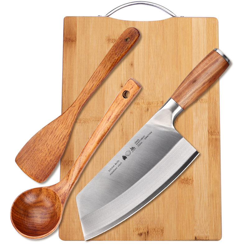 Kitchen knife (giving knife sharpening machine) kitchen knife cutting board (knife sharpening machine) knife plate shovel three sets (deliver knife sharpening machine) knife plate spoon three pieces (send knife sharpening stick) affordable fit 4 pieces (send the knife sharpening stick)