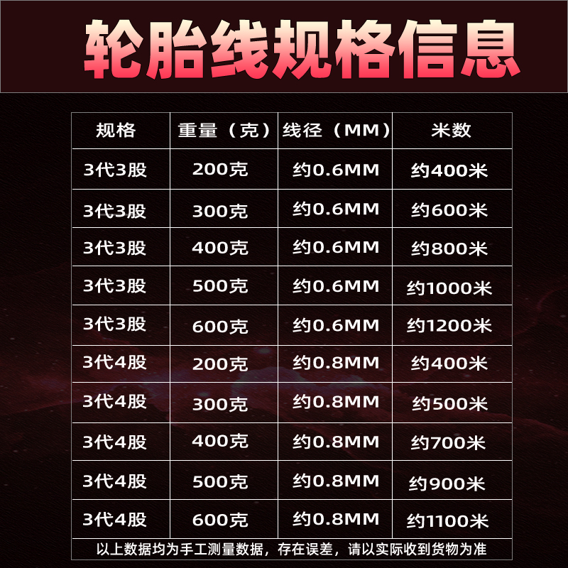 3 strands 400m tire line 3 shares 600m tire line 3 shares 800m tire line 3 shares 1000m tire line 3 strands 1200m tire line 4 shares 400m tire line 4 shares 500m tire line 4 shares 700m tire line 4 shares 900m tire line 3 3-strand Kevra line 180g 500m line No. 3 3 kevra line 250g 700m line No. 3 3 kevra line 300g 1000m line No. 3 kevra line 300g 1000m line 24-strand Kevra line 800g 1600m line No. 2 4-strand Kevlar Line 1000 g 2000m Line