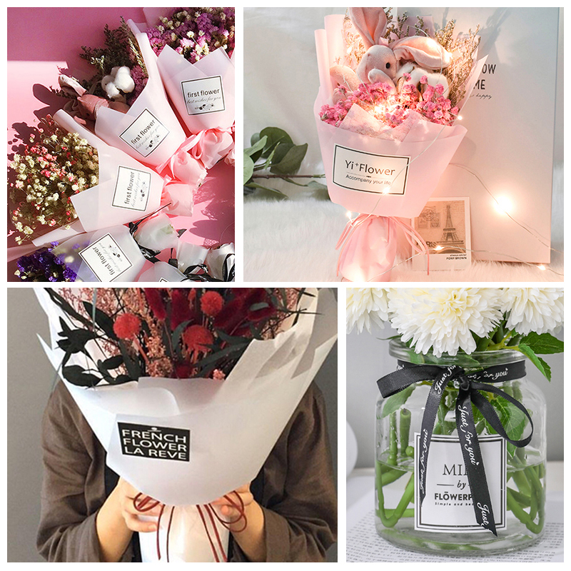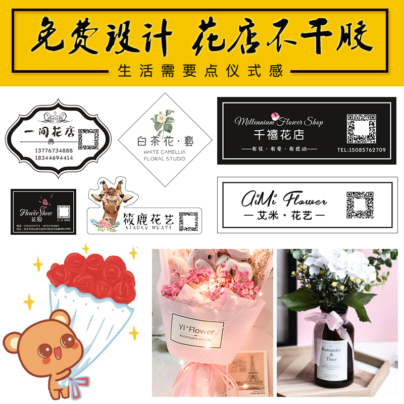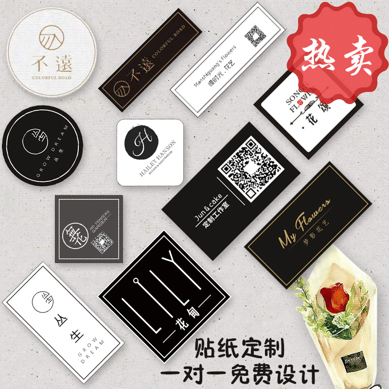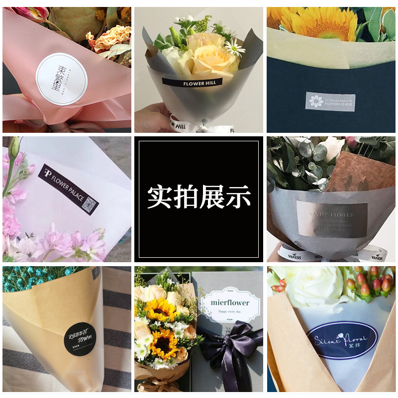 Flower bouquet sticker logo custom florist flowers roses full of stars decorated QR code self-adhesive trademark advertisesPrepared Valentine's Day Flower Art Packaging Plate card