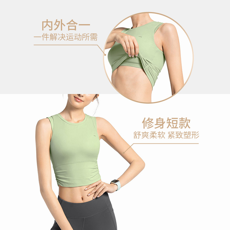 VFU tight-fitting short sports vest women's breathable running fitness clothing with chest pad yoga top summer sleeveless t-shirt N