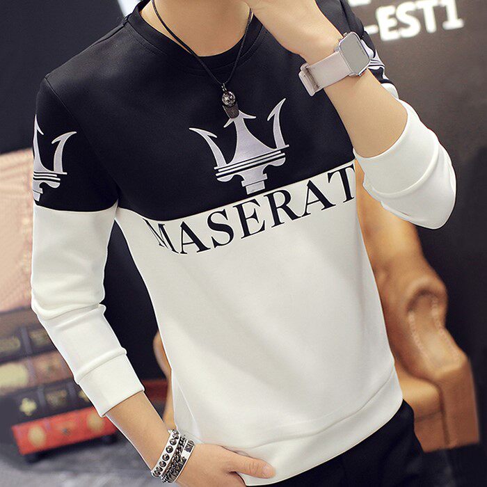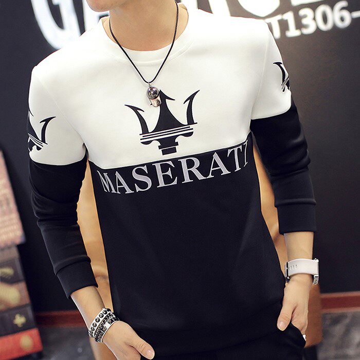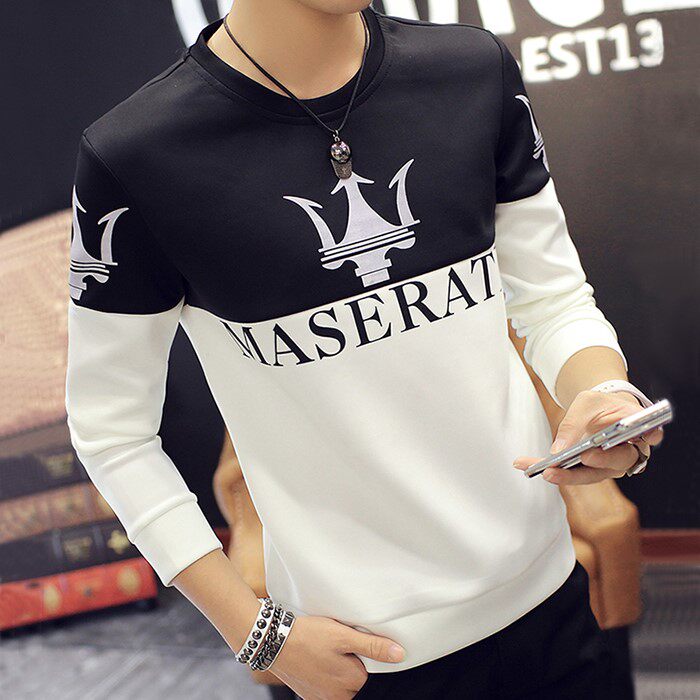 2020 spring sweater men's round neck long-sleeved pure cotton youth trend warm men's top printed shirt men's bottoming shirt