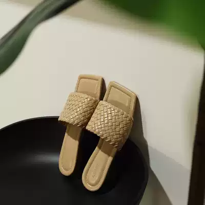 ALEX SARA square head vintage super soft woven flat bottom tow 2021 early spring new all cool cool sandals flat heel slippers