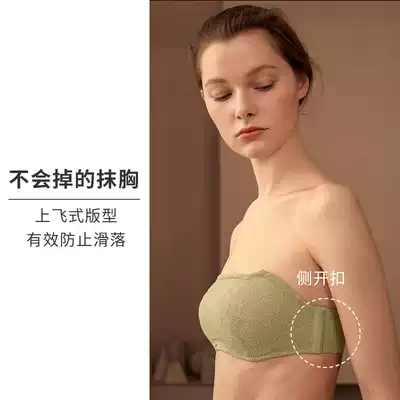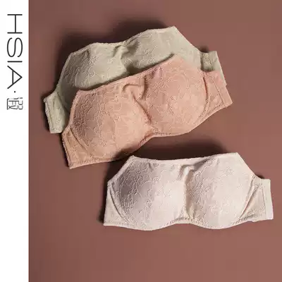 HSIA black lace Glossy seamless Bandeau bra Invisible half cup non-slip gathered strapless underwear female chest wrap