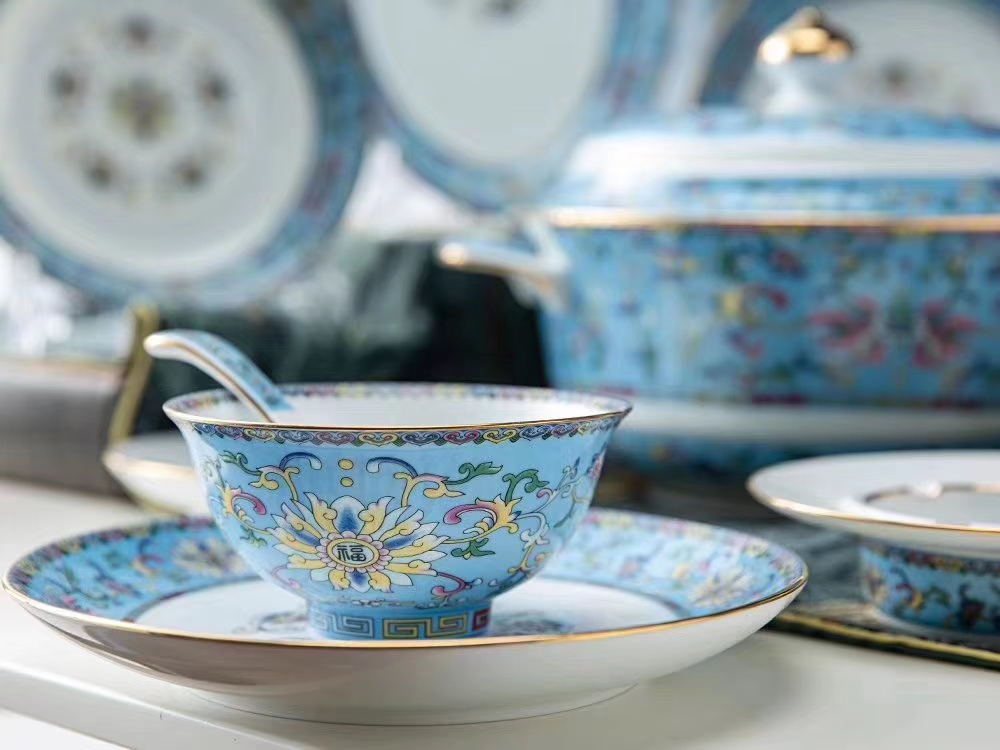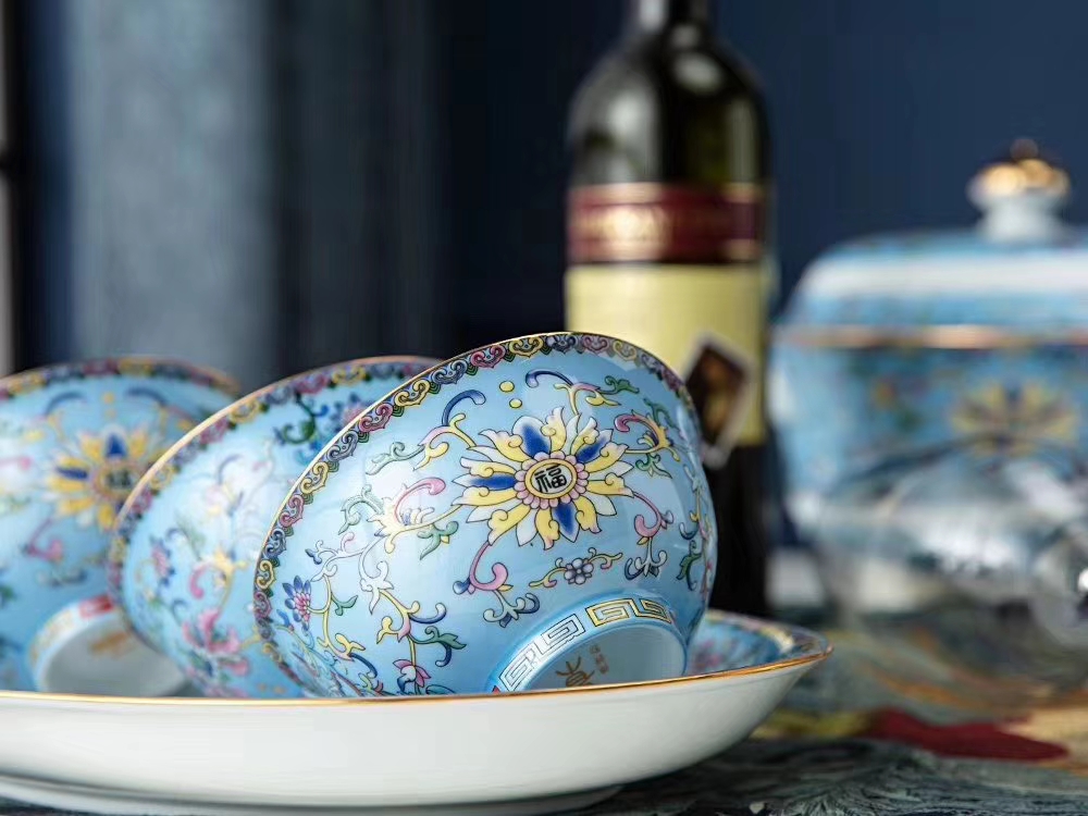 High-end Jingdezhen Ceramic cutlery Porcelain Cutlery Gift Bowl set for home Nordic Footypo dishes Dish Composition Soup Bowl