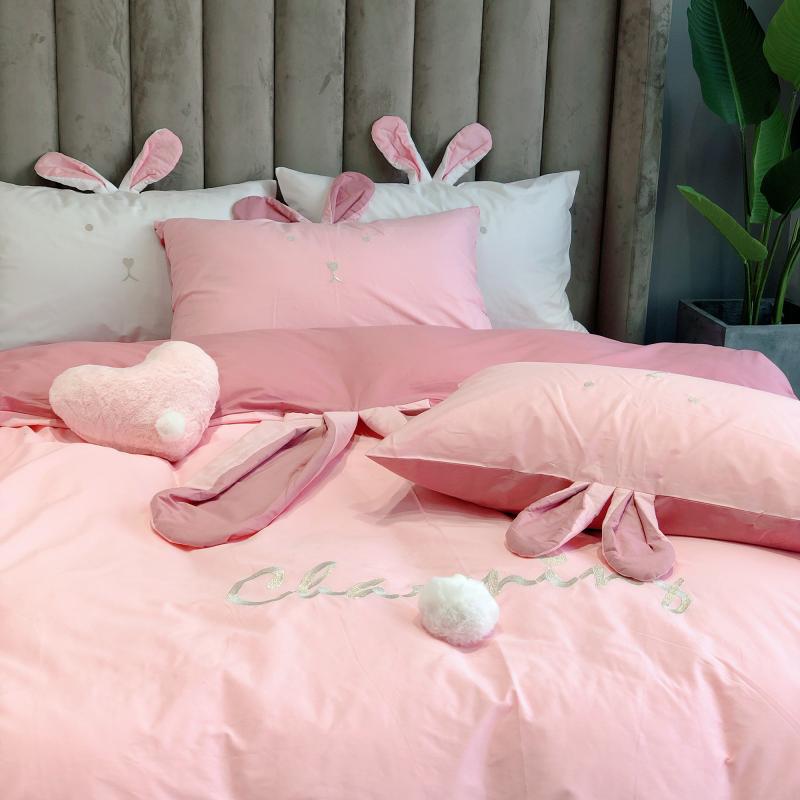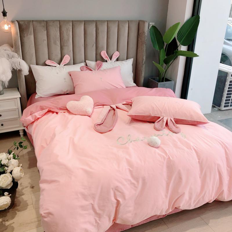 ins wind cute rabbit styling all cotton four pieces of minimalist pure cotton three 4 pieces Adolescent Hearts Quilt bedding Bed bedding