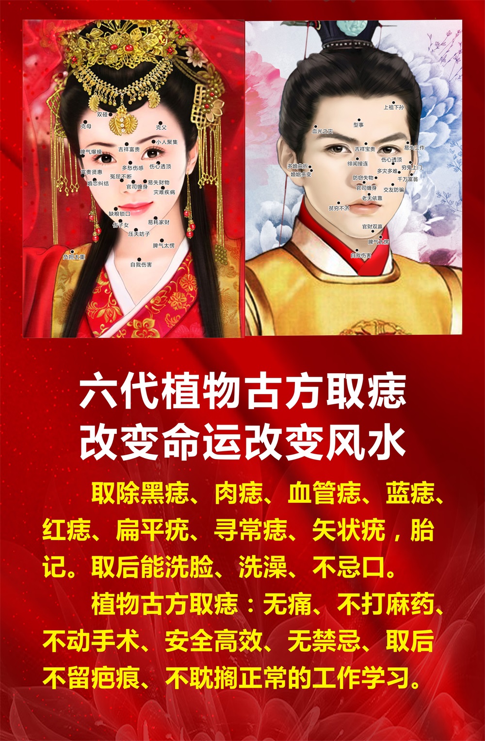 High-definition male and female facial mole map point mole poster wall chart remove mole remove mole remove mole plant mole remove mole face picture