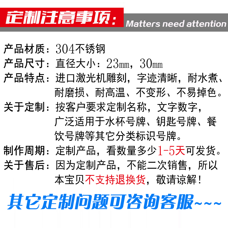 Diameter 23MM gray and white characters (single side) diameter 23MM gray and white characters (double sides) diameter 30MM gray and white characters (single side) diameter 30MM gray and white characters (double sides) stainless steel ring stainless steel chain