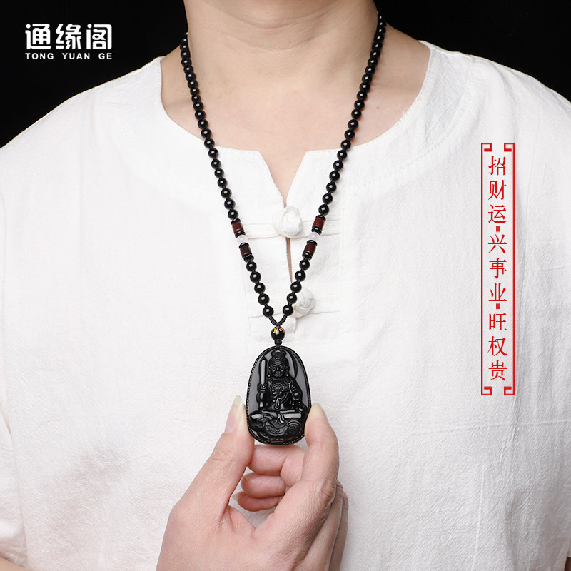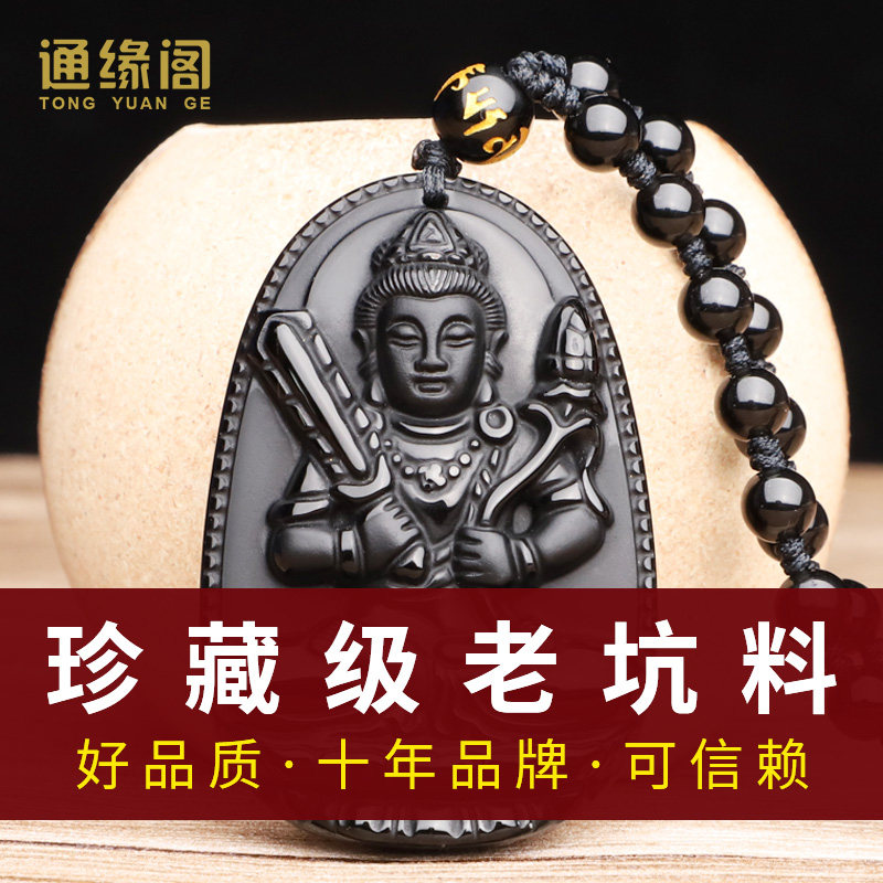 Natural Obsidian Natal Buddha pendant Male and female zodiac thousand hands Guanyin Bodhisattva day as a couple necklace