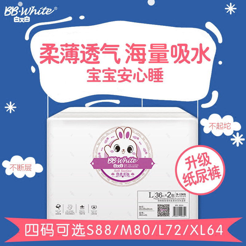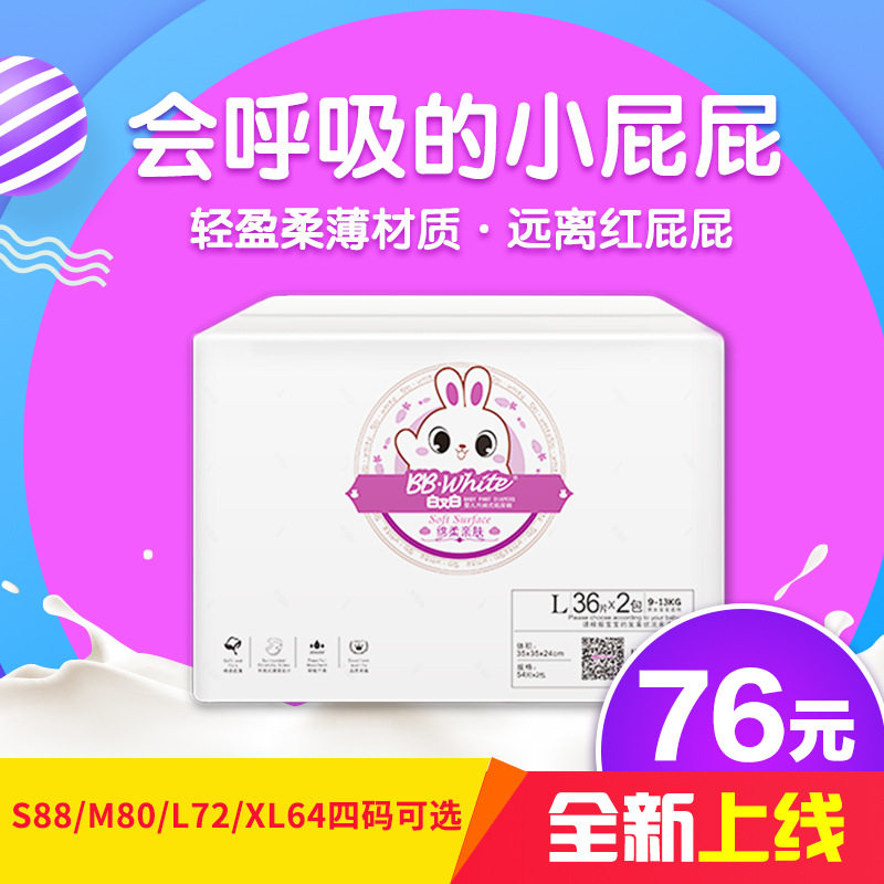 White and white light and thin baby paper diaper S88 sheet M80 L72 sheet XL64 sheet XL64 sheet baby urine not wet box clothes 2 packs