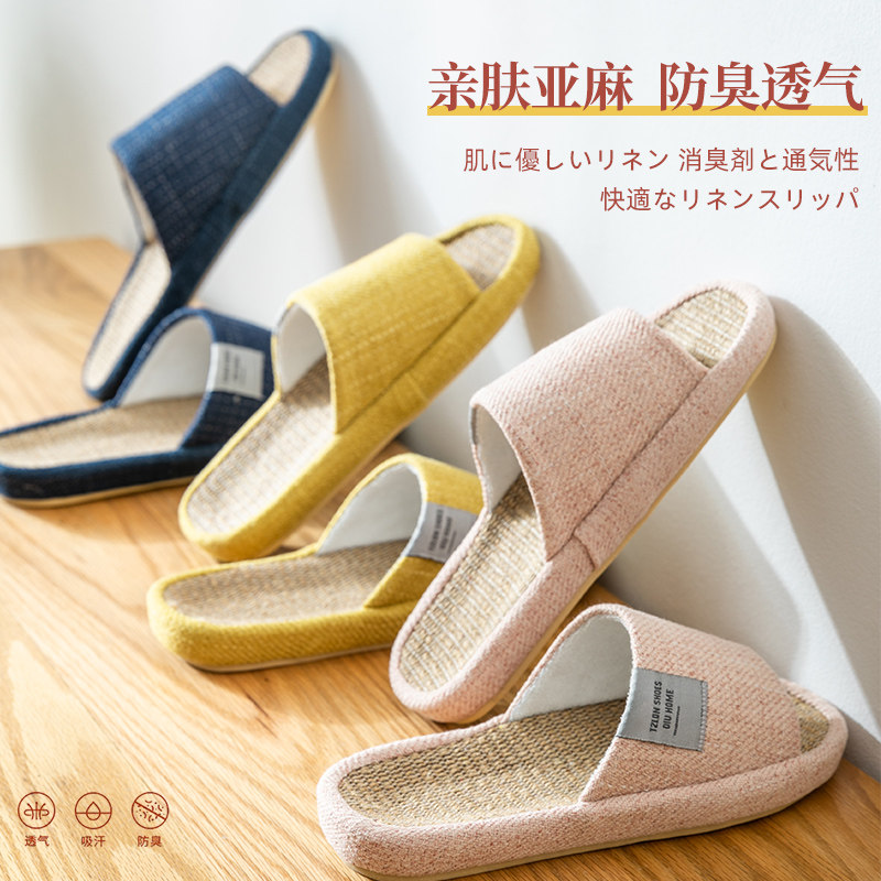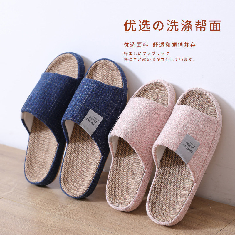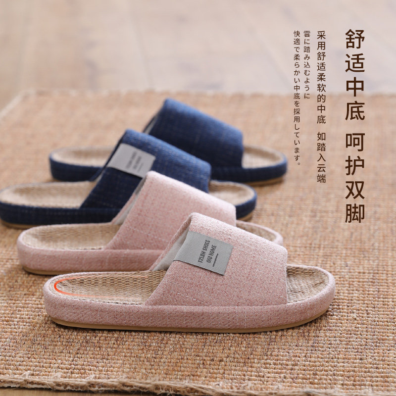 Buy one get one free with linen slippers Female deodorant indoor mute home living couple four seasons Male cotton hemp autumn and winter