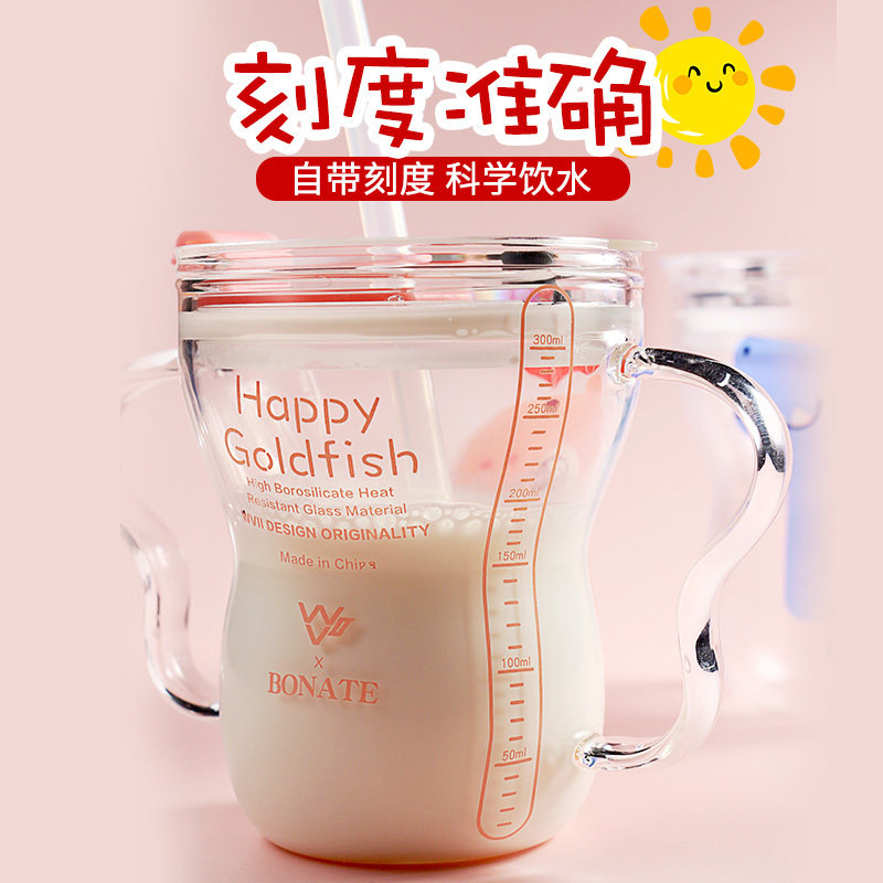 Household children with graduated glass milk cup microwave can be heated with handle to brew milk powder special drinking cup