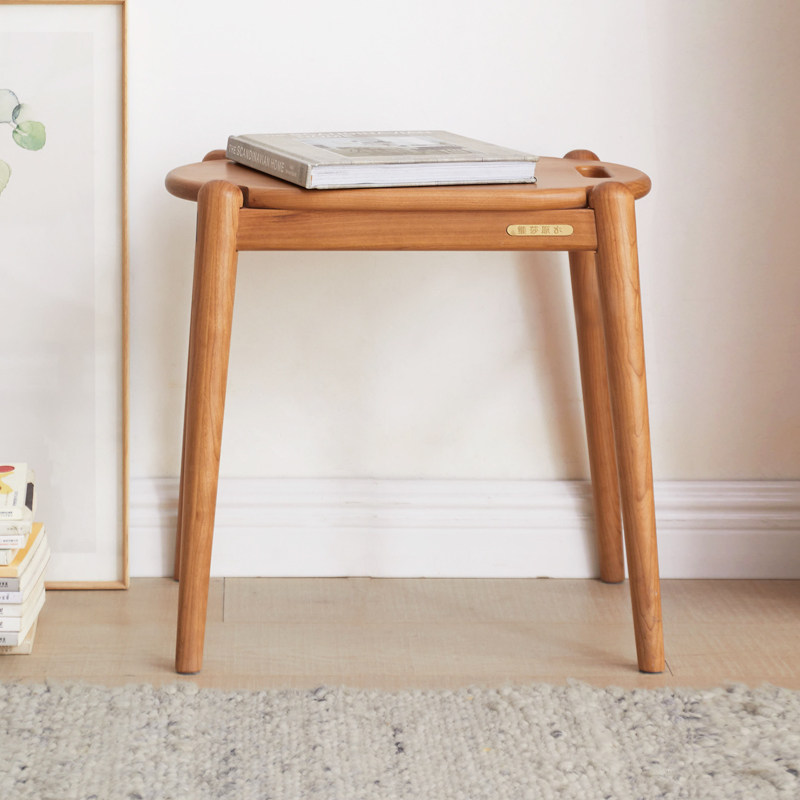 Visha full solid wood makeup stool modern minimalist bedroom log makeup chair Nordic household cherry wood leisure stool