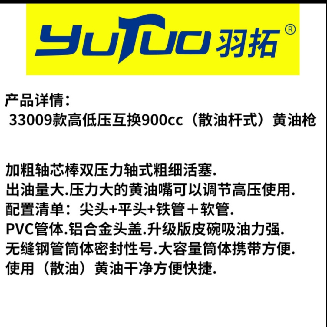 Yutuo heavy-duty high and low pressure interchangeable manual grease gun double pressure rod self-priming loader excavator agricultural