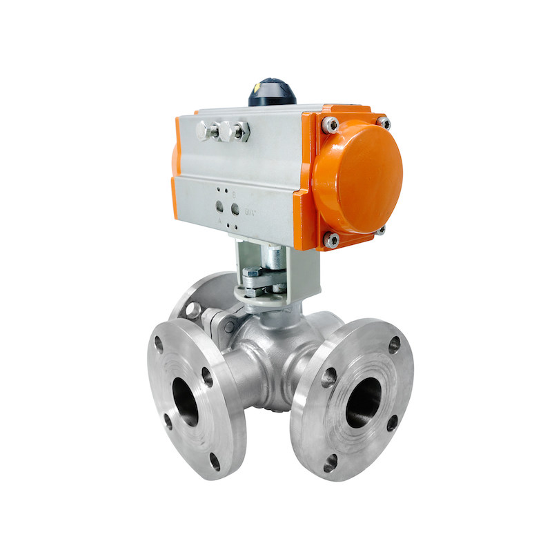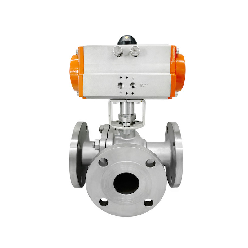 Q6441F-16 stainless steel tee flange ball valve pneumatic reversing triage DN15 -DN200