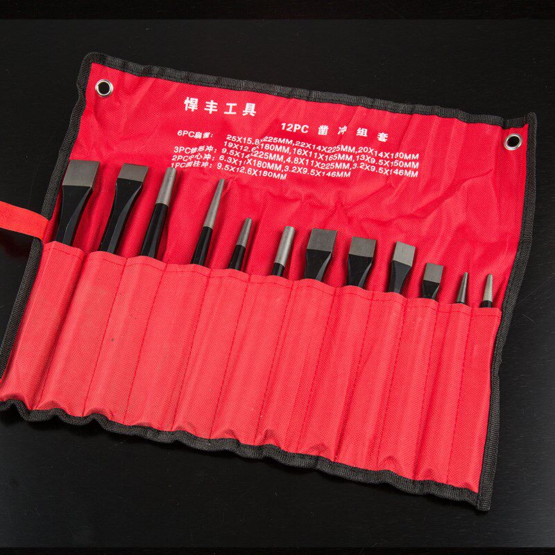 6 12-piece punch and chisel combination, chrome vanadium steel chisel, fitter, chisel, center punch, hardware tool set