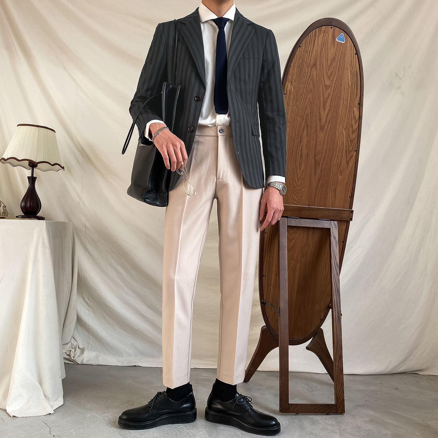 Spring and Autumn Strip Gray Small Suit Top Men Han Edition Leisure Super Business Costume
