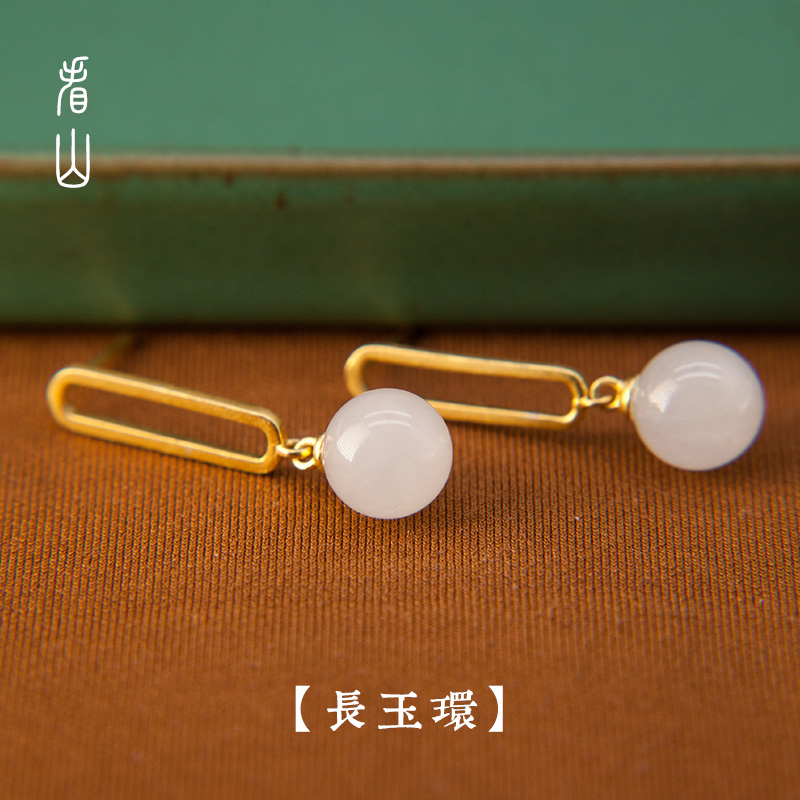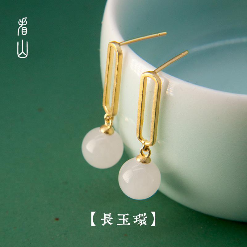 Look at the mountain) long jade ring) Hetian jade earrings pendant female silver cheongsam with mother's Forbidden City Song Dynasty new Chinese style earrings