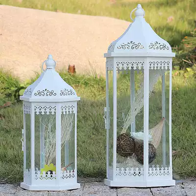 European wrought iron glass windproof lamp candle holder ornaments wedding romantic floor decoration Candlestick kerosene lamp portable lamp