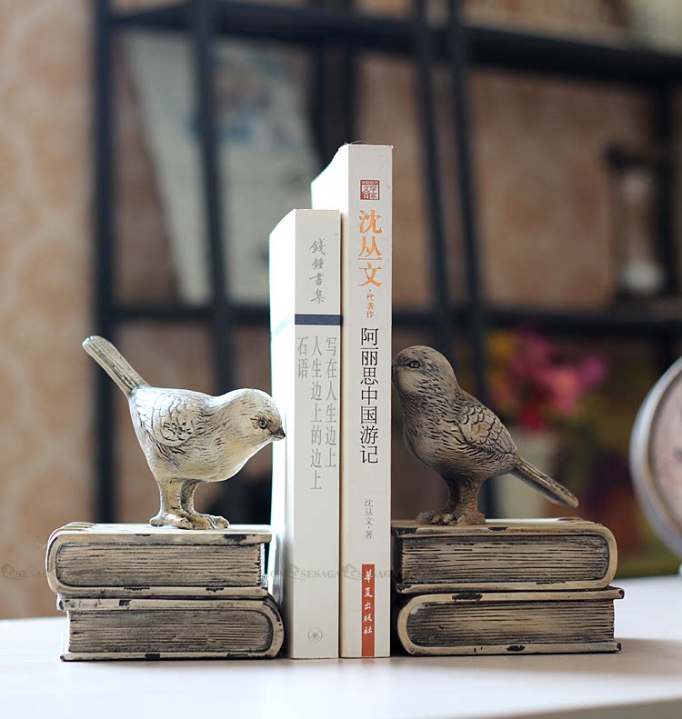 Creative book by bookshelf bookcase study European-style ornaments retro bookends American-style home decoration book stand craft gift decoration