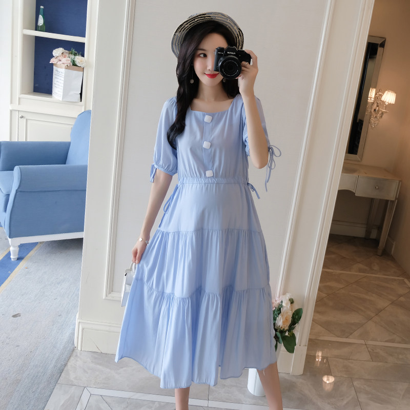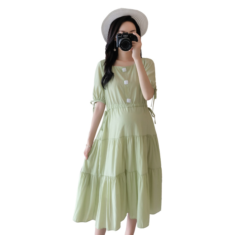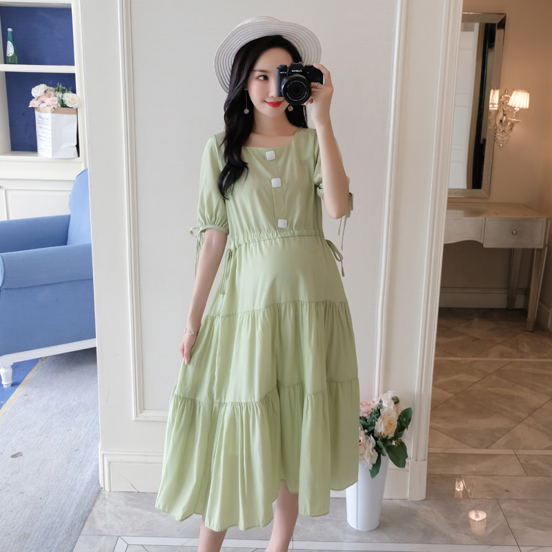 Maternity summer top trendy mom fashion models knee-high Chiffon maternity dress 2021 summer loose maternity skirt