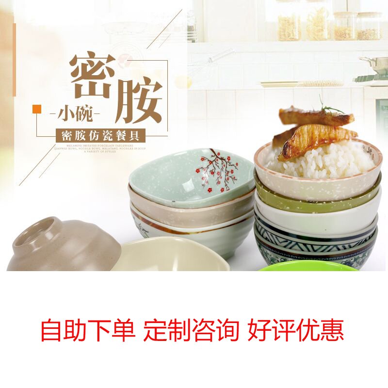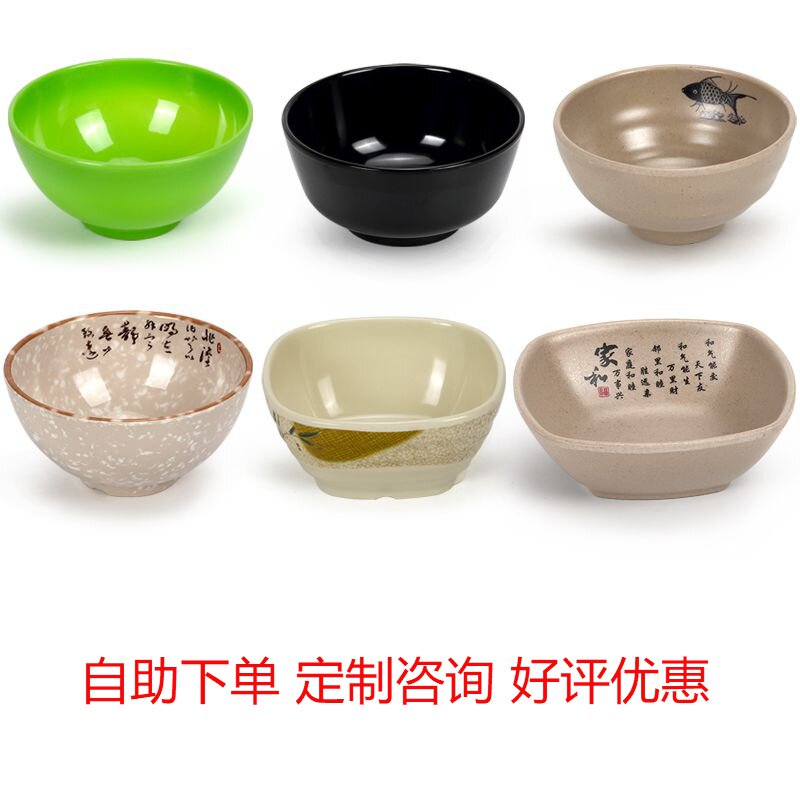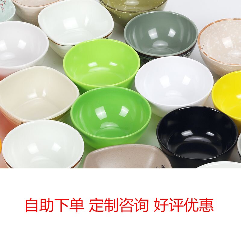 Color plastic bowl melamine bowl imitation porcelain tableware soup bowl rice new product practical bowl fast food bowl family bowl canteen bowl spoon