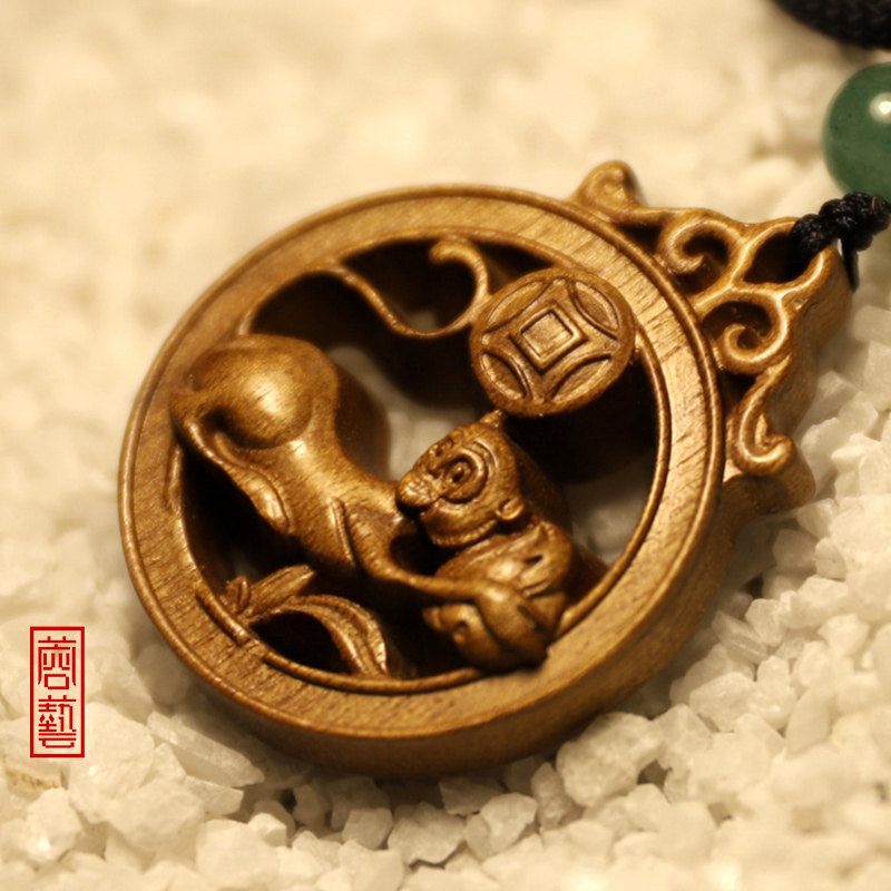 Golden Silk Nan Woody Life Zodiac Pendant Male male and female Squirrel Bull Tiger Rabbit Dragon Snake Horse Goat Monkey Chicken Dog Pig Necklace Pendant