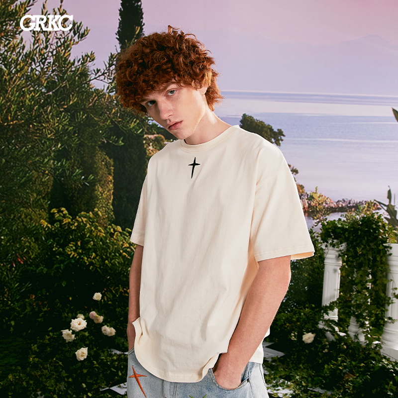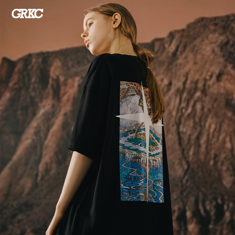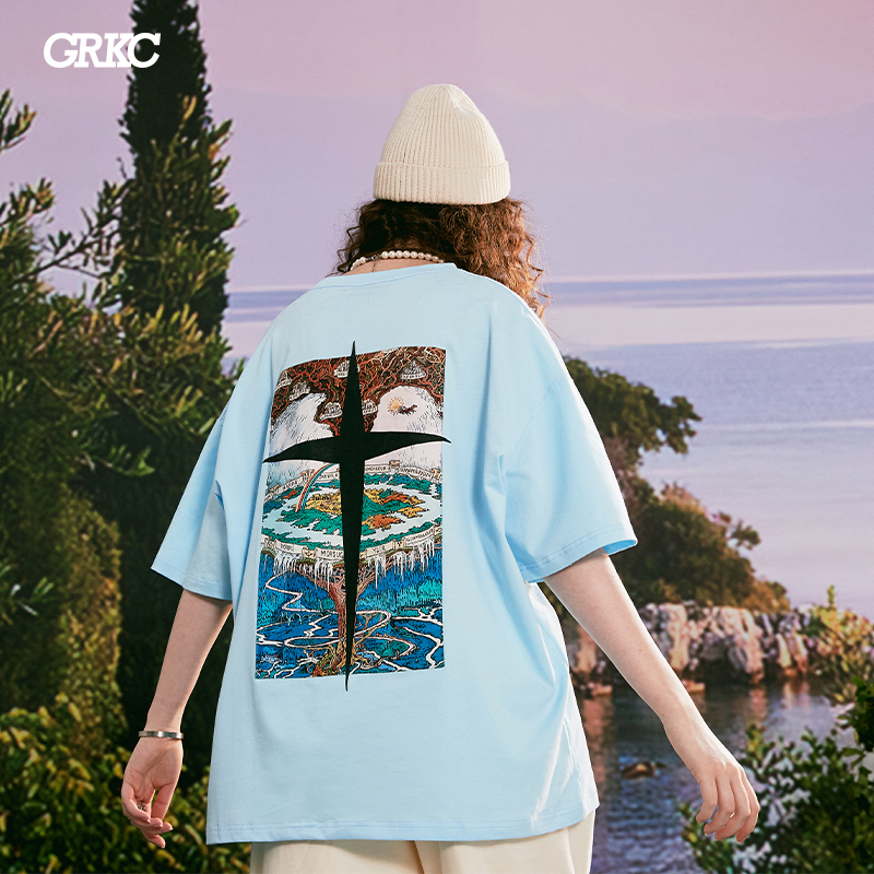 GRKC color Greece map Short-sleeved men's fashion brand ins national tide loose tide brand T-shirt women's summer niche design sense