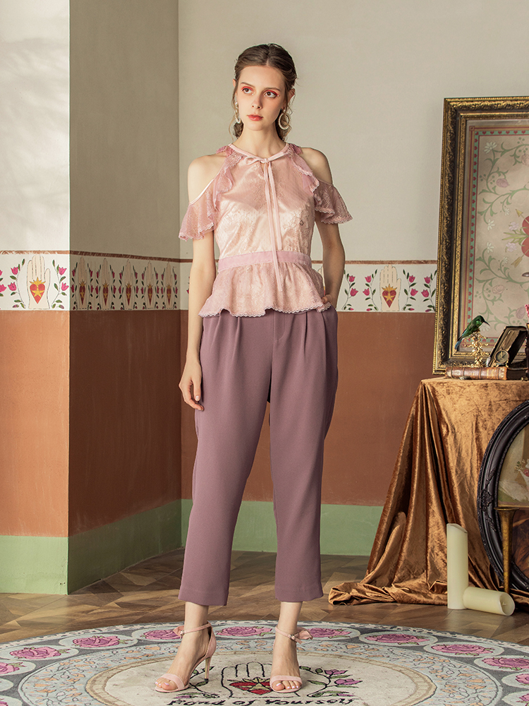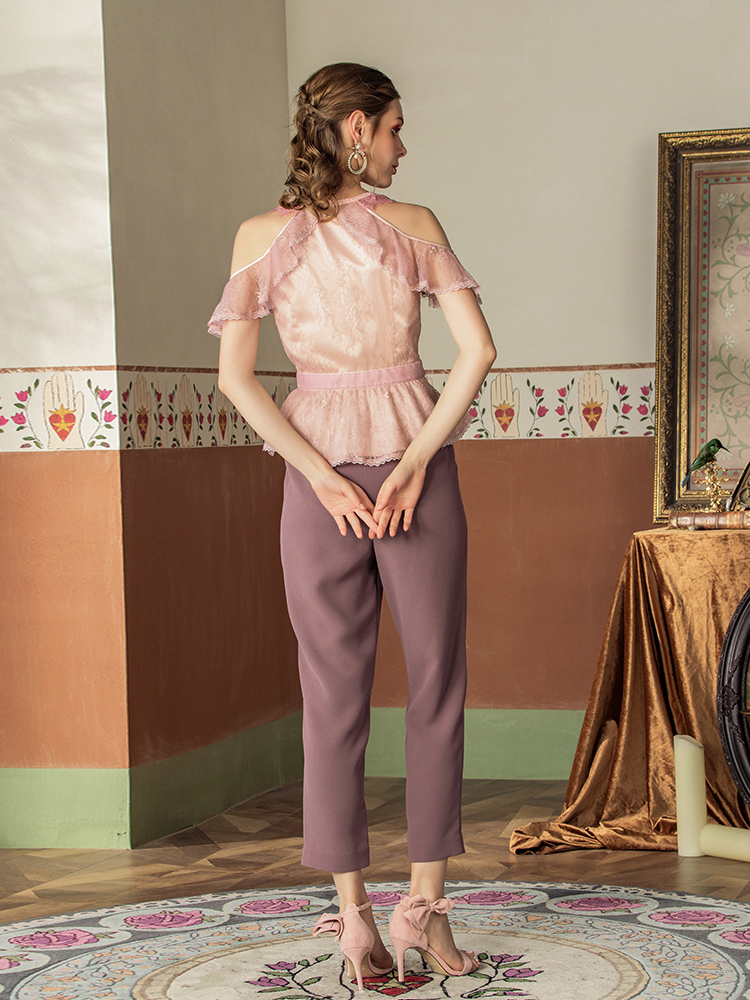 MAXRIENY spring new pink girl lace shirt slim skirt small shirt fashion strapless top fairy