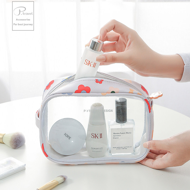 ins Korea Hyun Yafeng cosmetic bag transparent small fresh cute female trumpet portable carry-on cosmetic storage bag