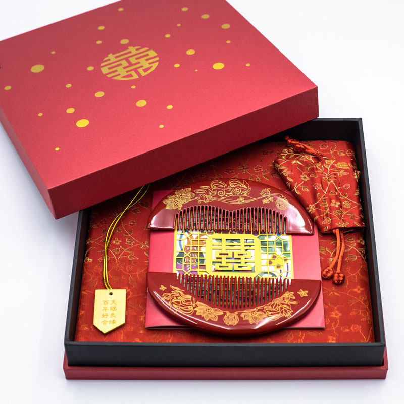 Carpenter Tan wooden comb gift box Hundred years of friendship Five tie knot wedding gift for best friend girlfriend