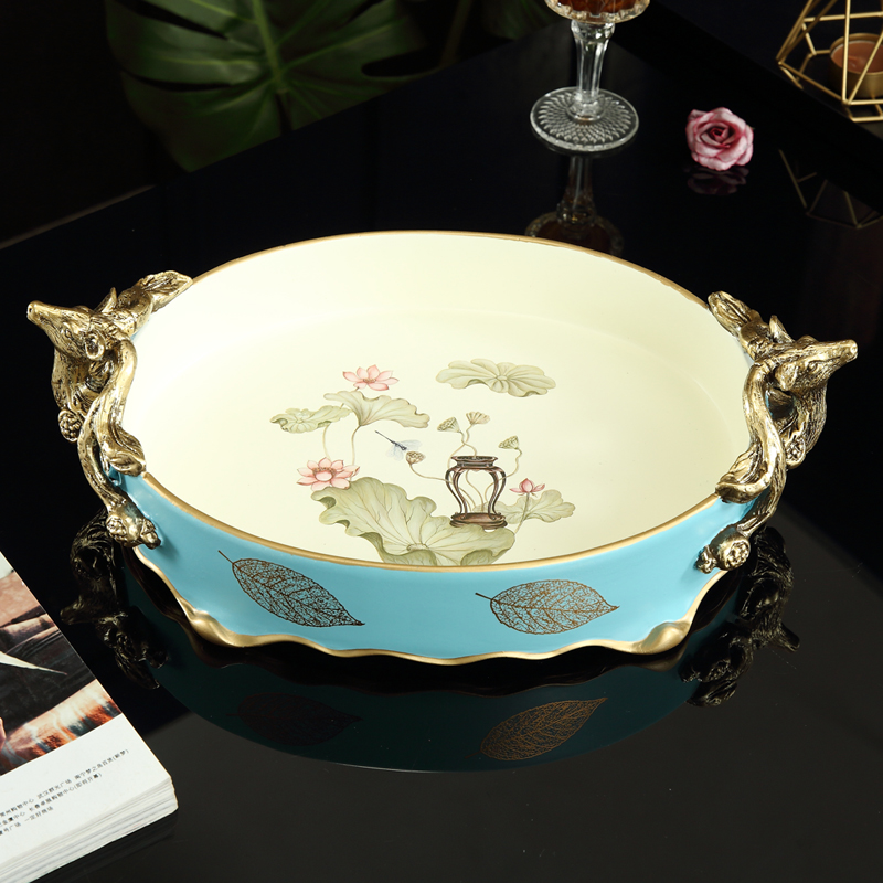 Eurostyle fruit tray living room tea table creative American dried fruit tray Decorative Pendulum decorated with light and luxurious and soft-packed home