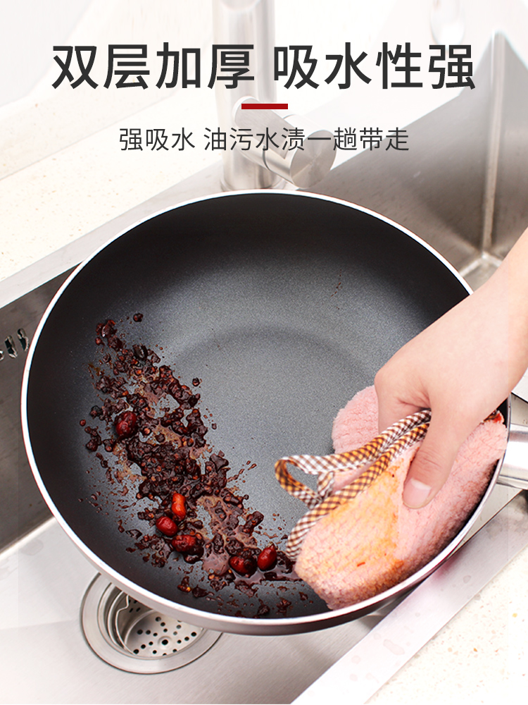 Rag housework cleaning absorbs water and does not lose hair linen kitchen rag to remove oil dishcloth towel thickened double-sided can be hung