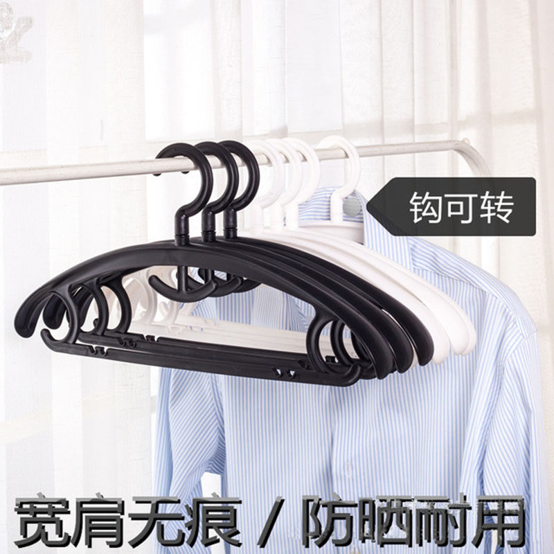 Black plastic hanger non-slip household white thickened clothes support wide shoulders clothes hook swivel sweater no trace clothes hanging