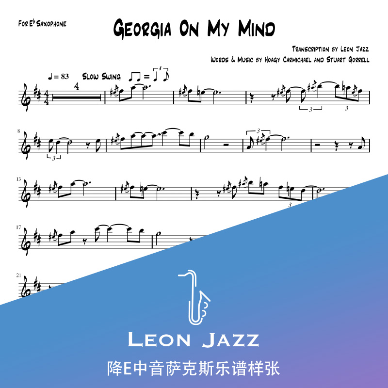 Georgia On My Mind saxophone score jazz standard score staff with accompaniment