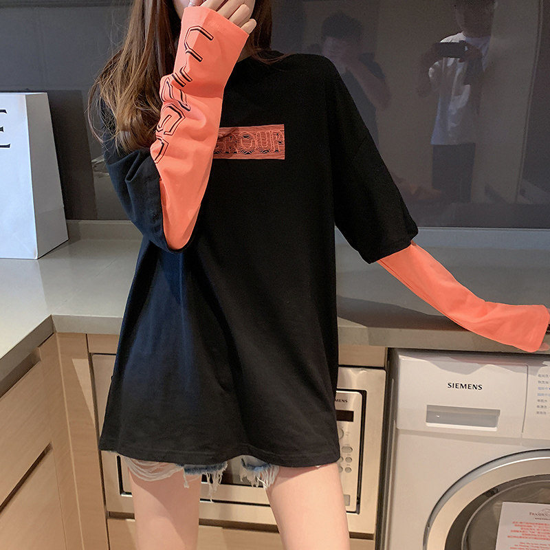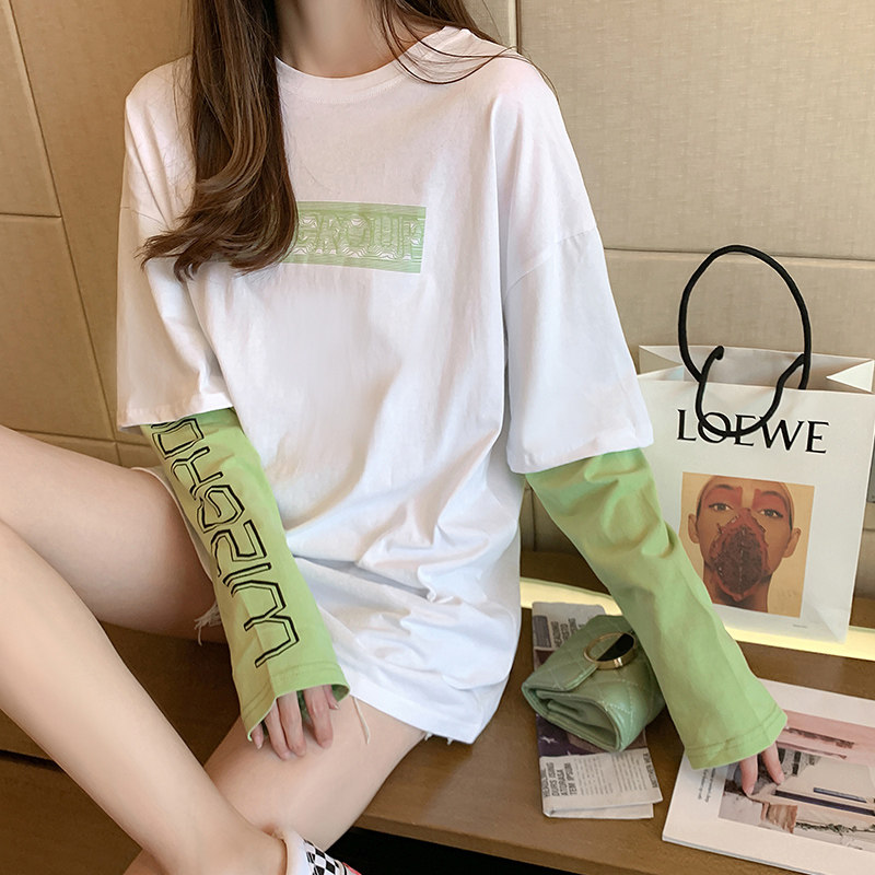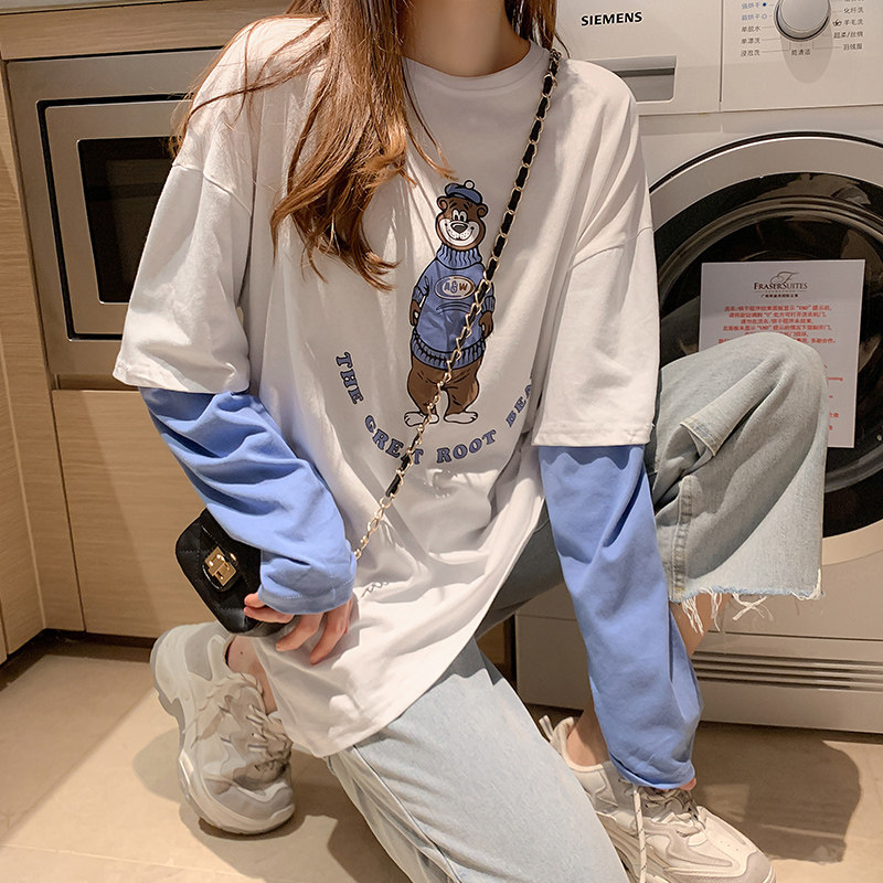 2021 spring and autumn new Korean edition pure cotton Western style inner tie base shirt loose student fake two long-sleeved T-shirt women