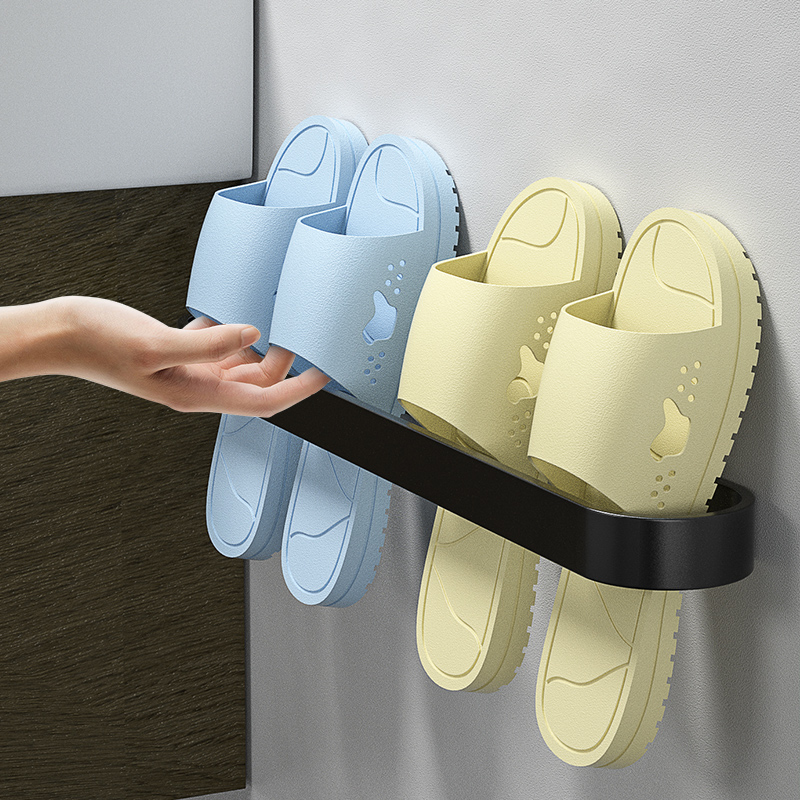 Black Bathroom Slippers Rack Wall-mounted free toilet wall hanging slippers Slippers Racks rack Shelves Containing devinators-Taobao