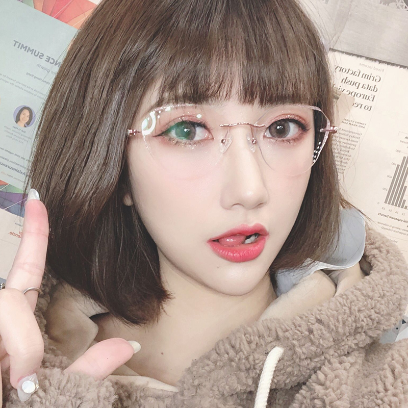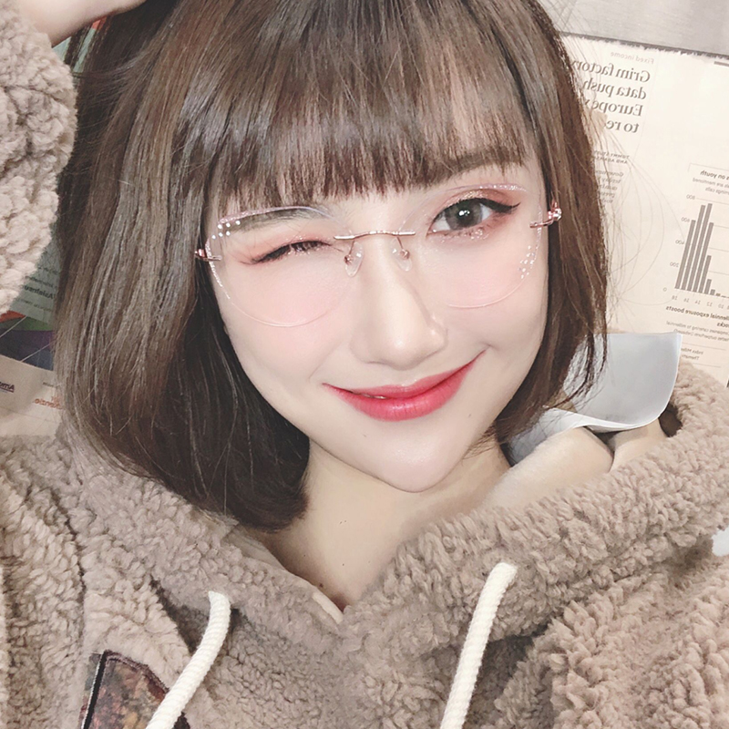 Shake little red book diamond cut edge frameless glasses women can be equipped with a degree fairy myopia eye frame makeup tide