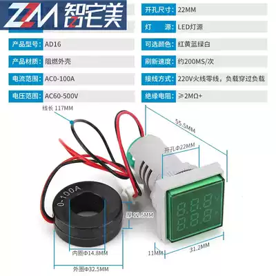AD16-22FVA AC 380V digital current voltmeter integrated indicator light one meter dual-purpose digital double display