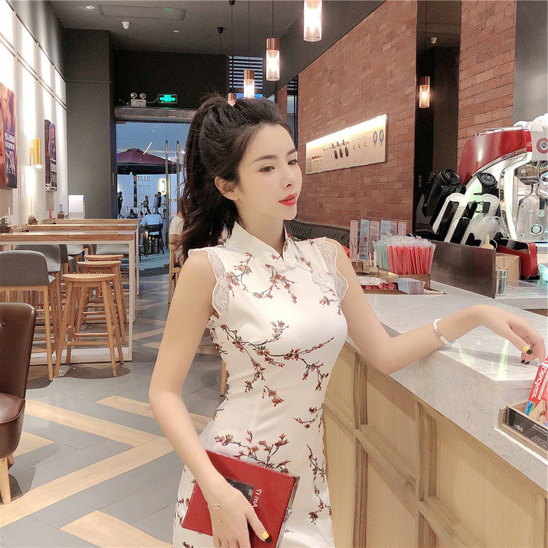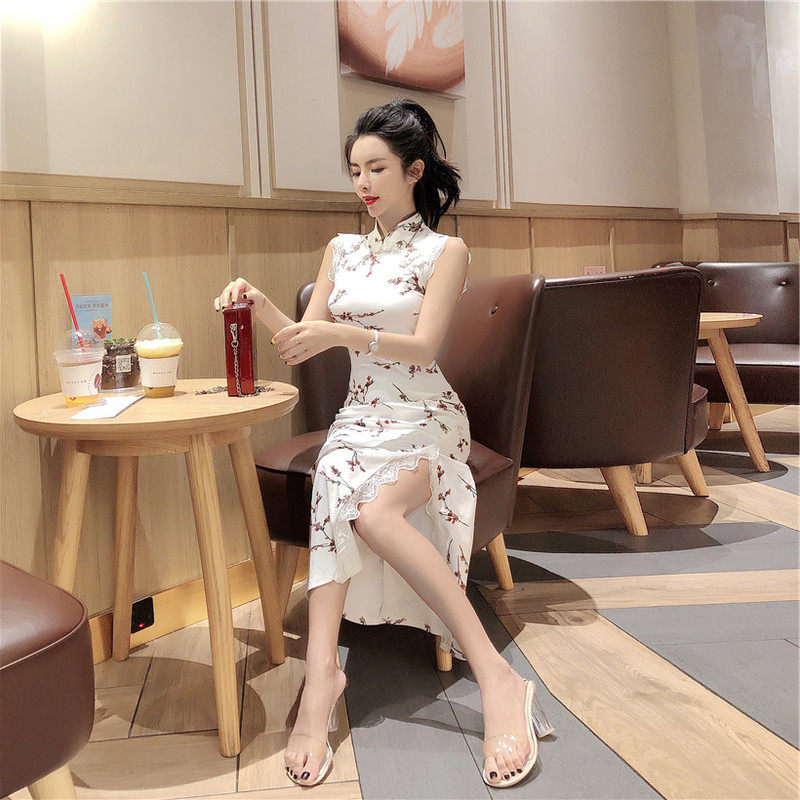 2022 Summer New Retro Sexy Slim Printed Dress Women's Dress Improved Cheongsam Ladies Fashionable Skirt