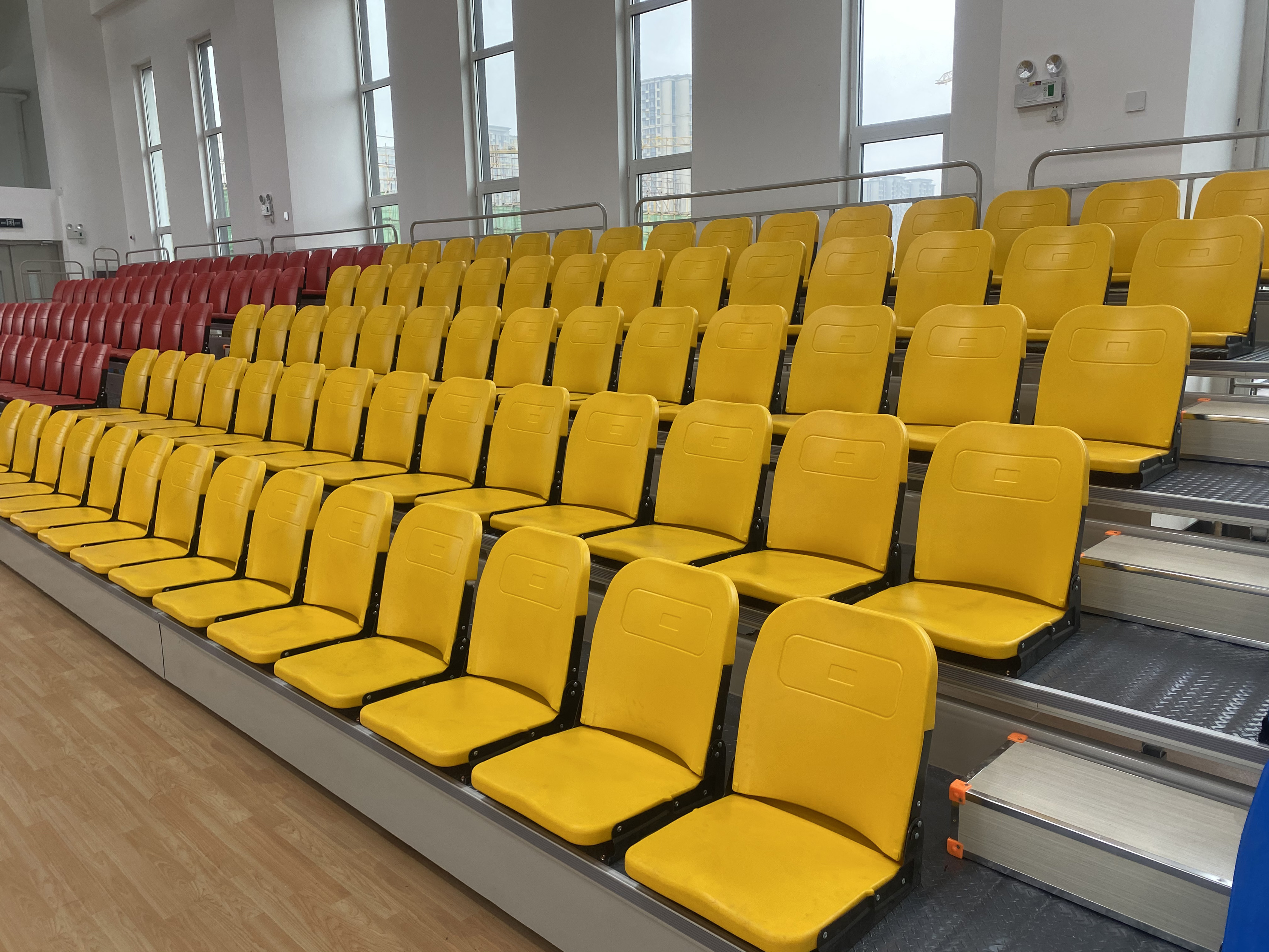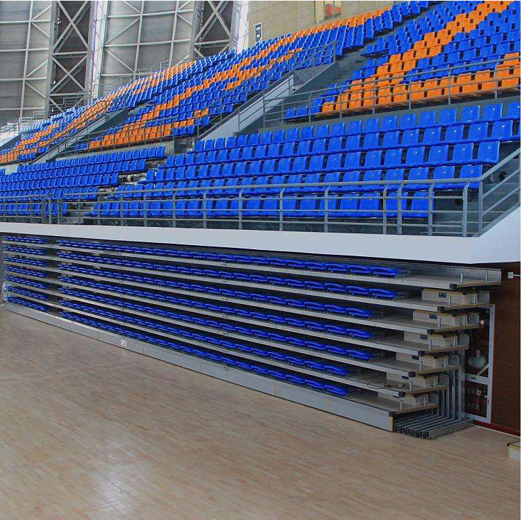 Manual telescopic grandstand low back with frame soft pack Manual telescopic stand with frame blow molding folding flap telescopic stand with frame Hollow bench telescopic stand with frame single high back seat
