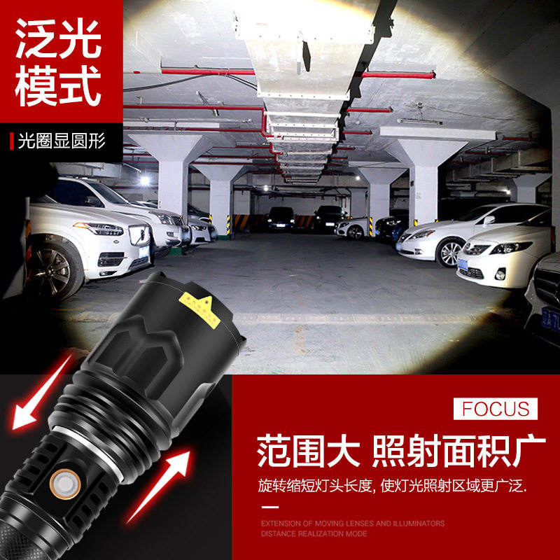 Strong light P70 zoom flashlight can be charged multi - function concentration household waterproof ultra - bright km of xenon lamp w