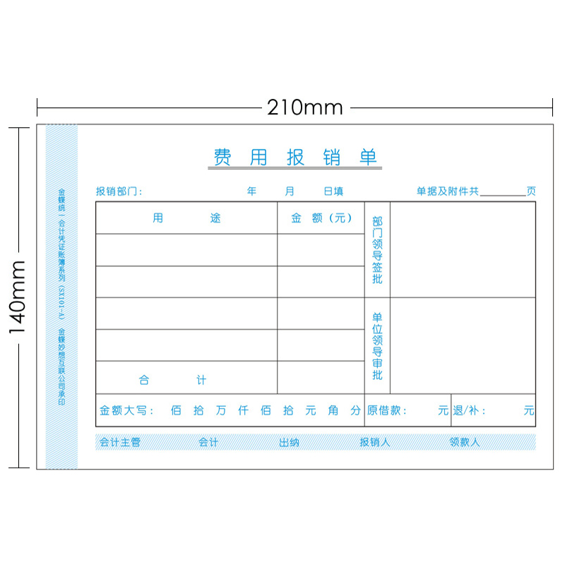 Kingdee expense reimbursement document SX101-A handwritten A5 universal 10 210 x 140 voucher 80g pure wood pulp paper