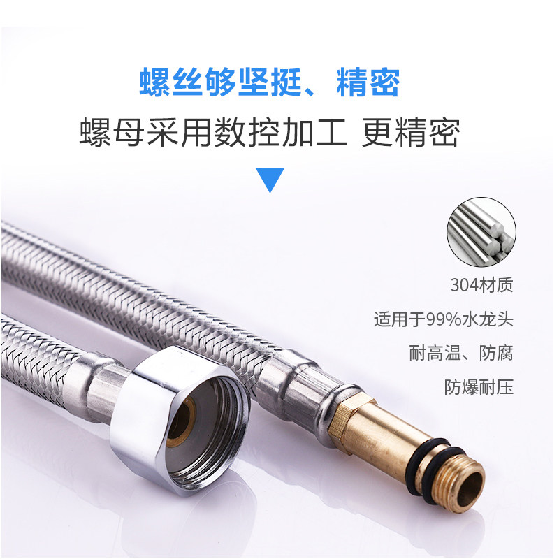 Kitchen washing basin faucet water pipe explosion-proof cold and hot water single-tip head basin water hose stainless steel connecting tube
