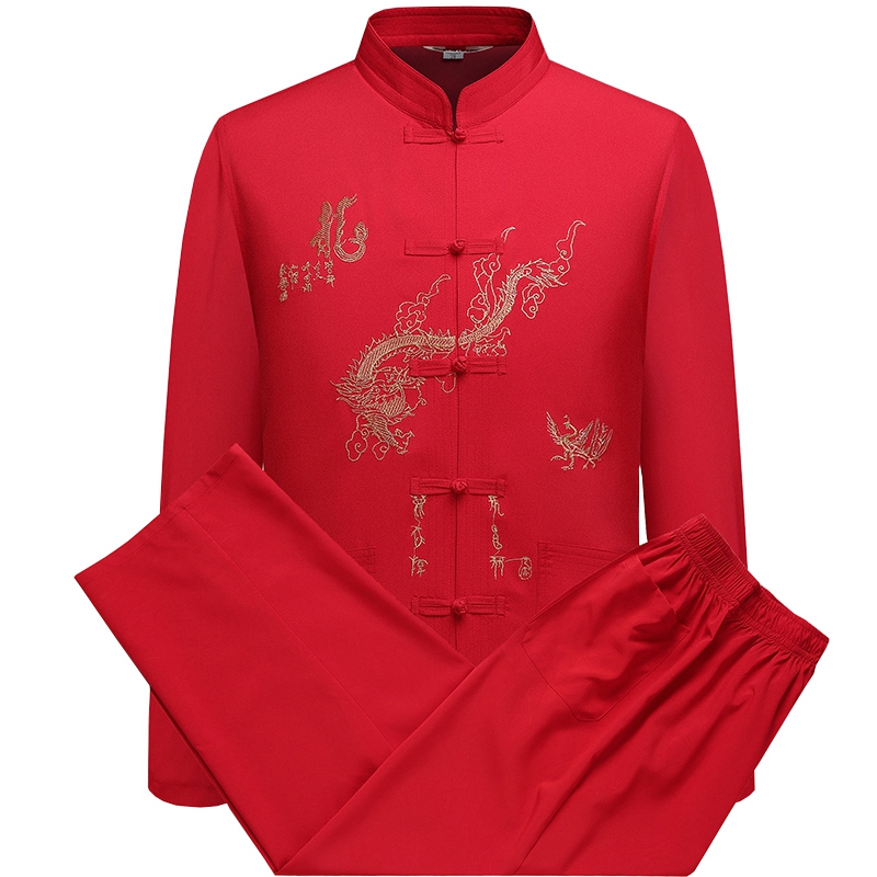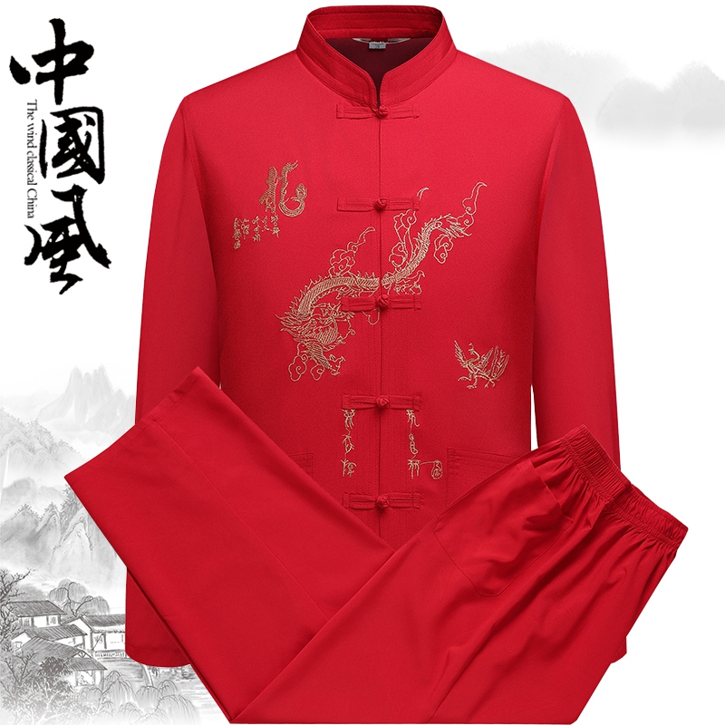 Middle-aged and elderly Spring and autumn clothes suit Down with male long sleeves Chinese wind embroidery Dad big size morning practice Grandfather Han Fu