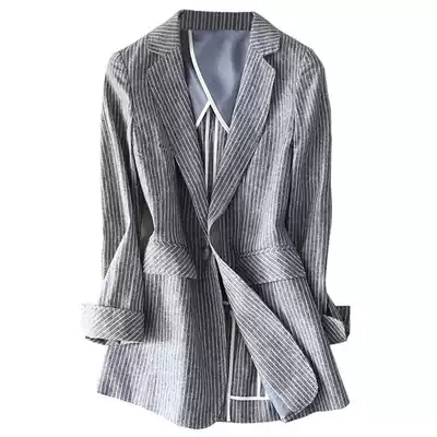 Thin striped chic linen blazer women's Korean version of casual British style slim cotton and linen small suit women's top