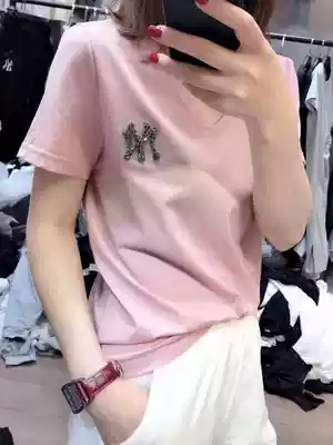 Tide brand 2021 summer new V-neck loose large size all-match hot diamond T-shirt women's Korean white cotton short-sleeved top